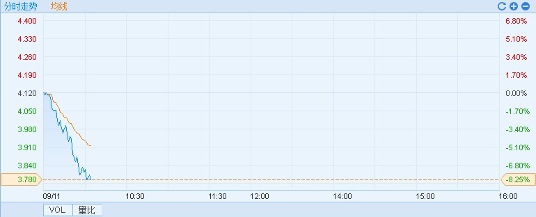 智通財(cái)經(jīng)APP獲悉,今日早盤(pán)A股鋼鐵板塊低開(kāi)低走,現(xiàn)鋼鐵板塊跌超3%,馬鋼股份(600808)跌逾6%,受此影響,港股馬鞍山鋼鐵股份(00323)也跟隨下跌,截至10時(shí)02分,跌8.25%,報(bào)價(jià)3.78港元,成交額9244萬(wàn)。