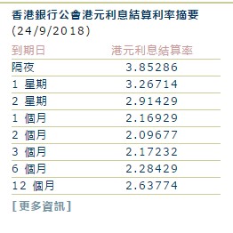 7天港元HIBOR報(bào)3.26714%,上升137.9個(gè)基點(diǎn),為2008年9月以來最大漲幅。