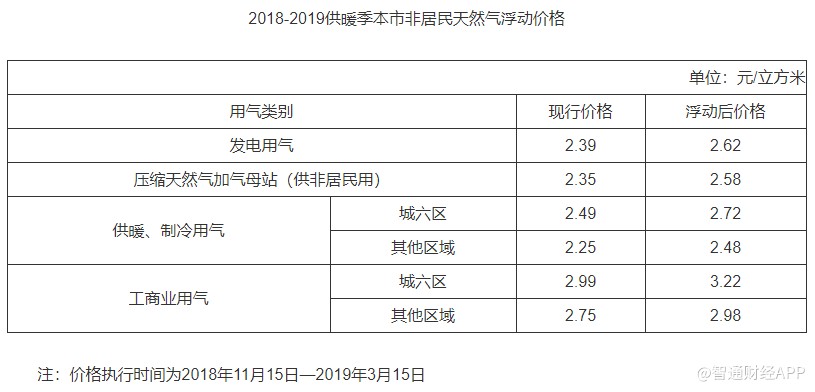 智通財(cái)經(jīng)APP獲悉,11月13日,北京發(fā)改委發(fā)布關(guān)于2018-2019供暖季本市非居民天然氣銷售價(jià)格浮動(dòng)問題的通知。2018年11月15日至2019年3月15日,天然氣銷售價(jià)格上浮0.23元/立方米。