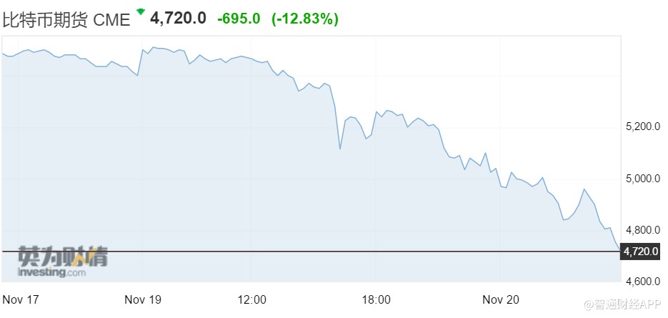 智通財(cái)經(jīng)APP獲悉,因悲觀情緒持續(xù)存在,比特幣在幣值跌破6000美元長(zhǎng)達(dá)一周之后,昨日又暴跌12.83%,跌破5000美元關(guān)口,報(bào)4720美元。過(guò)去7天,比特幣跌超22%;今年以來(lái)累跌60%以上;與歷史高點(diǎn)相比累跌70%以上。