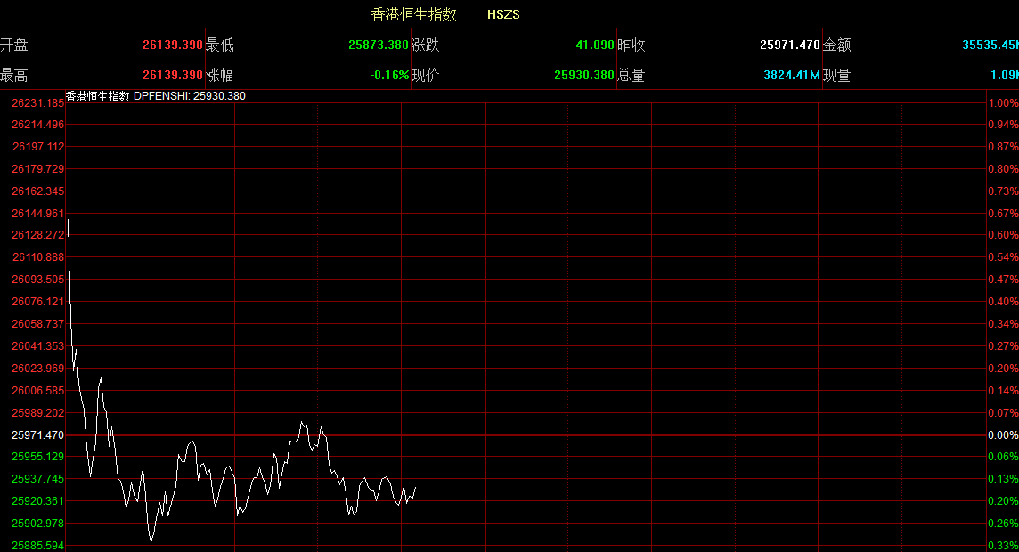 智通財(cái)經(jīng)APP獲悉,恒生指數(shù)開(kāi)盤(pán)漲0.65%,報(bào)26139.39點(diǎn)。國(guó)企指數(shù)漲0.39%,報(bào)10526.58點(diǎn)。紅籌指數(shù)漲0.16%,報(bào)4272.91點(diǎn)。大市盤(pán)前成交12.23億港元。