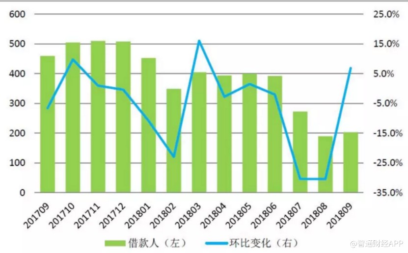 從統(tǒng)計(jì)數(shù)據(jù)可以看出,從今年6月開始,P2P網(wǎng)貸行業(yè)借款人人數(shù)出現(xiàn)大幅下滑,重疊上圖正是行業(yè)監(jiān)管加強(qiáng)開始的時間點(diǎn)。到了9月,借款人人數(shù)首次開始回升,說明市場已經(jīng)感受到監(jiān)管后行業(yè)規(guī)范化的提高,這正說明市場對P2P行業(yè)信心正在出現(xiàn)回升。