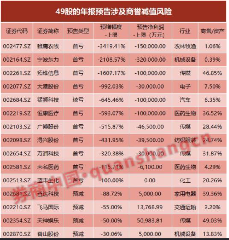 操作建議:本周外圍股市圣誕休市,A股超跌、政策利好顯現(xiàn)下有望企穩(wěn)、回升;50白馬藍(lán)籌持續(xù)調(diào)整顯示中線資金籌碼松動(dòng),市場(chǎng)結(jié)構(gòu)性?xún)r(jià)值中樞再下臺(tái)階,近期注意回避業(yè)績(jī)風(fēng)險(xiǎn),尤其是商譽(yù)減值對(duì)公司年報(bào)影響。創(chuàng)歷史新高的1.4萬(wàn)億A股商譽(yù),已切實(shí)地影響上市公司的年度業(yè)績(jī);在已發(fā)布的年報(bào)業(yè)績(jī)預(yù)告中國(guó),有49家公司認(rèn)為存在商譽(yù)減值風(fēng)險(xiǎn),將在2018年年底進(jìn)行減值測(cè)試,一旦確認(rèn)減值,將導(dǎo)致2018年業(yè)績(jī)下滑、轉(zhuǎn)虧或擴(kuò)大虧損,商譽(yù)減值成為一些公司業(yè)績(jī)不確定性的一大來(lái)源。