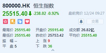 港股開盤(12.24)︱恒指跌0.92%報25515點今日僅上午開市