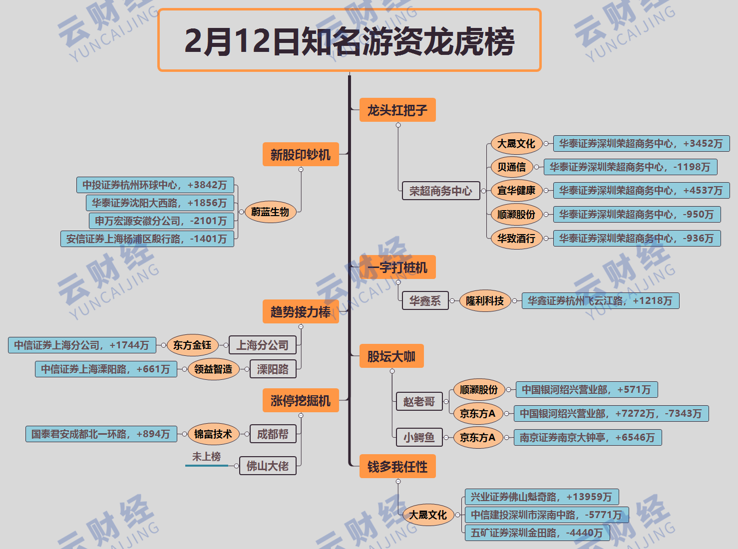 其他游資方面,趙老哥買入順灝股份(002565)571萬,買入京東方7272萬賣出7343萬,小鱷魚買入京東方6546萬,榮超商務中心買入宜華健康(000150)4537萬,賣出貝通信(603220)1198萬。