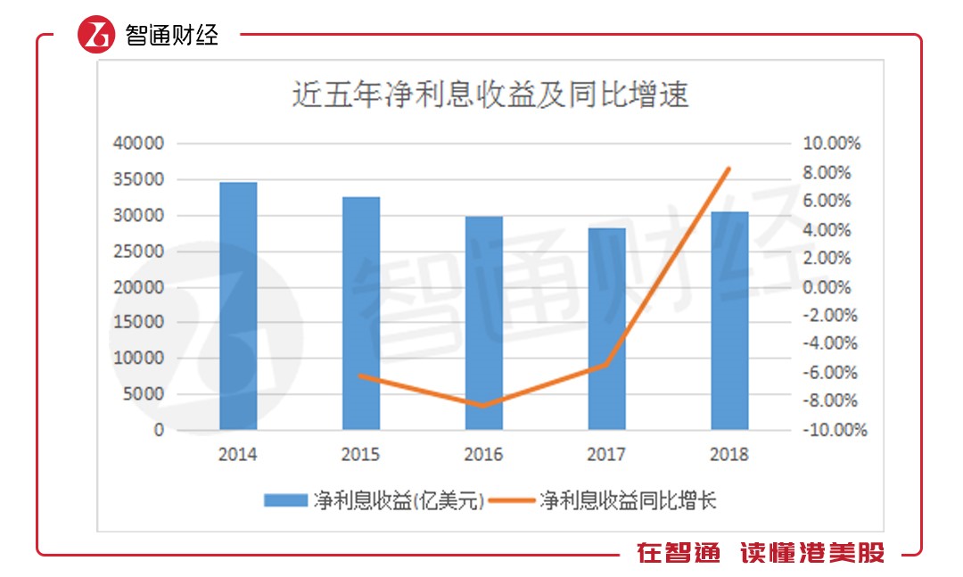 2018年,匯豐控股凈利息收益方面實(shí)現(xiàn)了大幅度增長(zhǎng),共實(shí)現(xiàn)304.89億凈利息收益,較去年同期增長(zhǎng)8.21%,并高于2016年凈利息收益。而在此前2015-2017年間,匯豐控股凈利息收益均為負(fù)增長(zhǎng)。