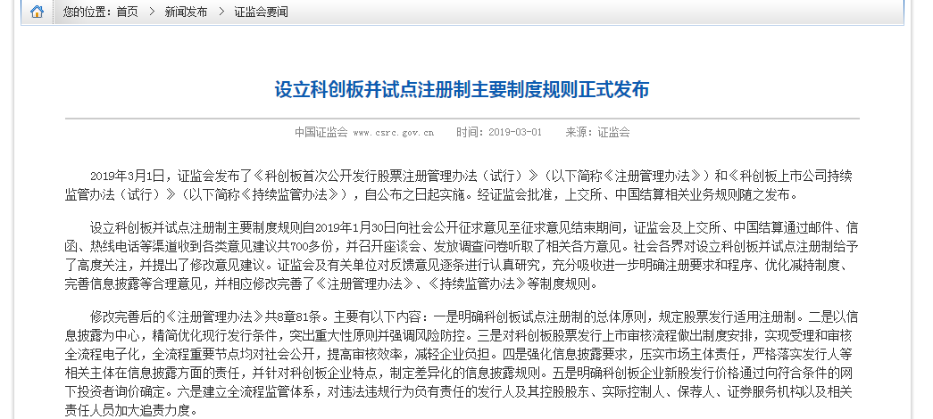 3月1日晚間,中國證監(jiān)會(huì)、上海證券交易所正式發(fā)布設(shè)立科創(chuàng)板并試點(diǎn)注冊制的主要制度規(guī)則。這表明,經(jīng)過一個(gè)月的意見征集,市場高度關(guān)注的科創(chuàng)板正式開閘。要點(diǎn)總結(jié)如下: