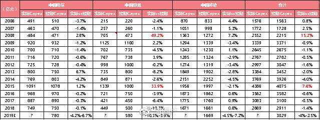 但在調(diào)整之前,我們需要確定當(dāng)前三大運(yùn)營商給出的2019年度資本開支計(jì)劃具有多大參考性?最終5G投資是否會(huì)超出或不及340億元的預(yù)期?