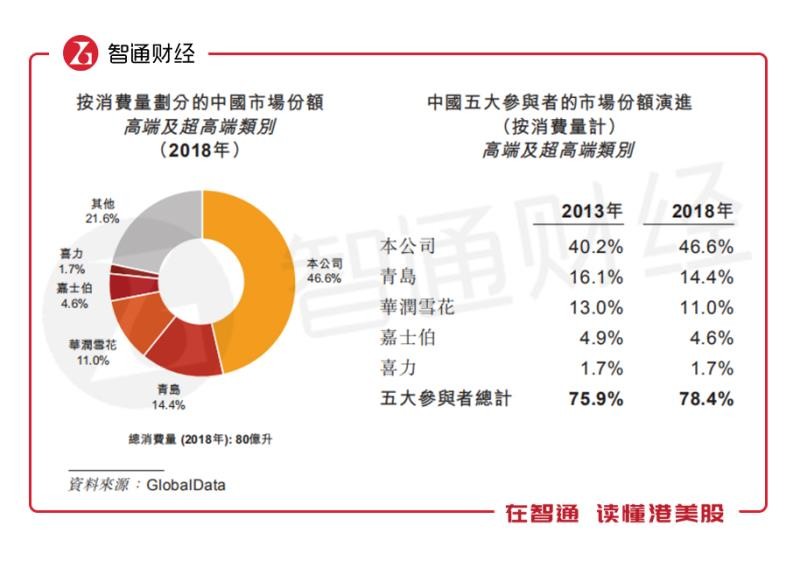 以中國市場為例,按銷量計,2018年百威在中國啤酒市場的市占率為16.4%排名次于華潤雪花和青島啤酒(00168)位居第三位。但在高端及超高端啤酒領域,百威的份額達到46.6%,遙遙領先。
