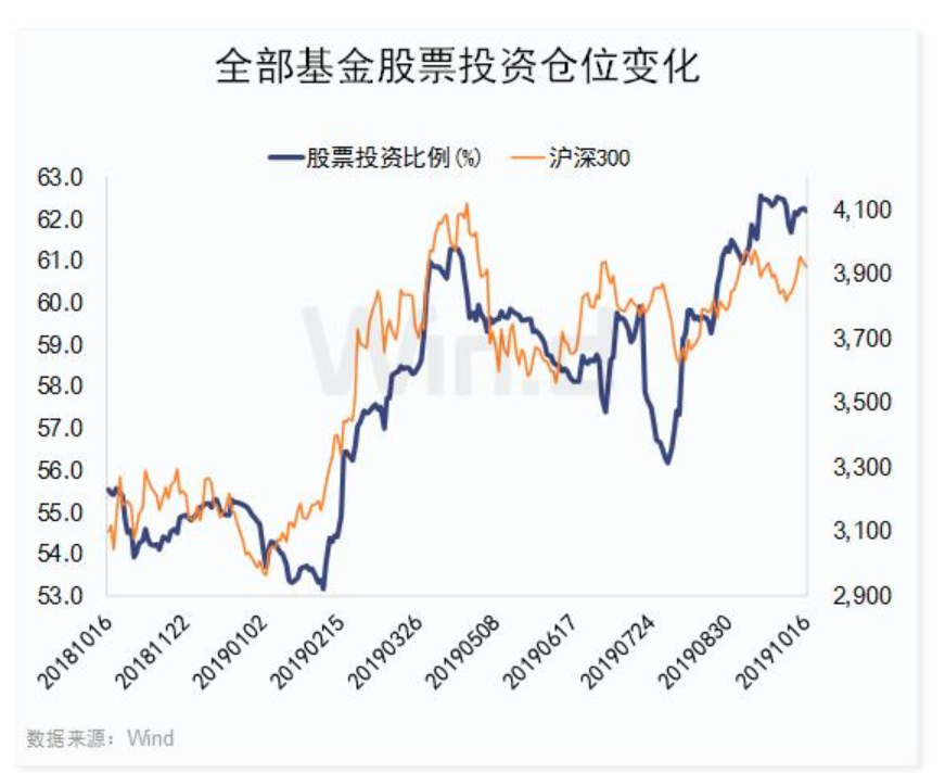 Wind數(shù)據(jù)顯示,截止10月16日,在全部3307只持有股票的基金中,股票投資比例為62.21%,下半年來(lái)累計(jì)增倉(cāng)3.59個(gè)百分點(diǎn)。