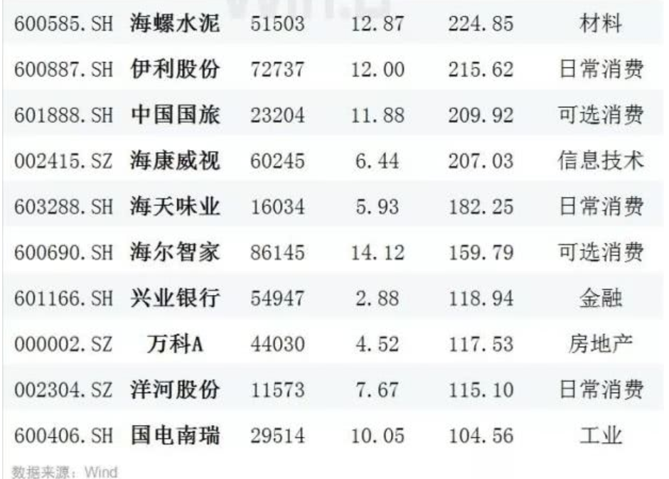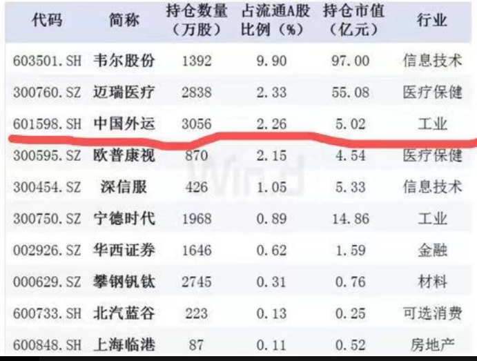 2019年獲北向資金新進持倉的個股數(shù)量達10只,增持個股數(shù)量達405只,新進合計增持股數(shù)量占比高達87.92%。新進持倉個股中,韋爾股份、邁瑞醫(yī)療、中國外運持倉比例居前,分別達9.9%、2.33%、2.26%。共有21只個股獲北上資金持股市值超過百億元。
