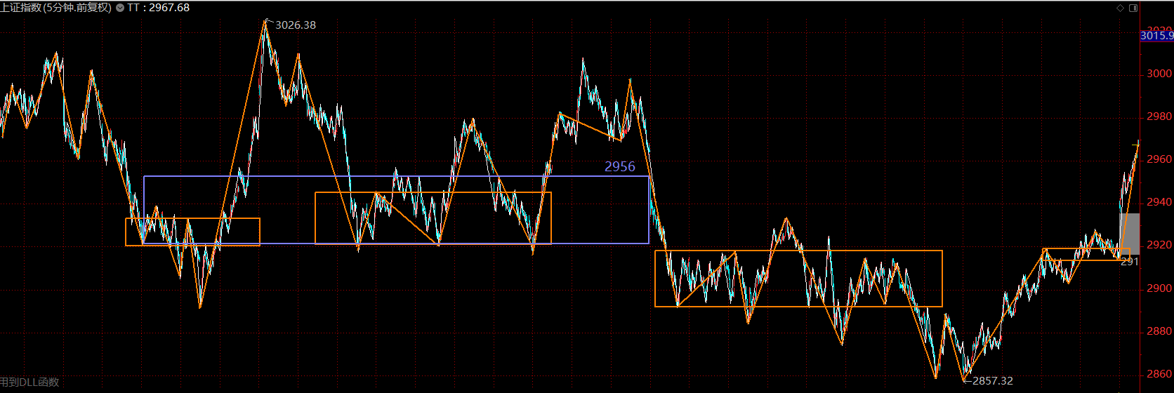 上周市場用前四天的時(shí)間,完成了這一輪五分鐘上漲趨勢的第一個(gè)中樞構(gòu)建,是一個(gè)奔走型的中樞,隨后在周五開始了主升階段。值得欣喜的是,市場終于在2956這個(gè)大關(guān)口放量了,并且一舉突破,預(yù)計(jì)在2956到3000點(diǎn)這40點(diǎn)的空間內(nèi),市場將會完成五分鐘上漲第二個(gè)中樞的構(gòu)建,并且橫盤將其擴(kuò)展為30分鐘級別,時(shí)間周期大約是極點(diǎn)出現(xiàn)后的10到15個(gè)交易日。這將是投資者積極調(diào)倉換股,耐心布局年報(bào)行情的最佳時(shí)期。
