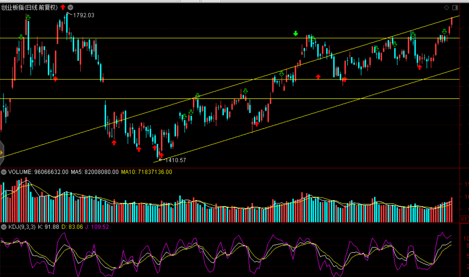 技術面:短期量價配合,延續(xù)震蕩反彈;滬弱深強,創(chuàng)業(yè)板50作為市場風向標,謹慎創(chuàng)業(yè)板50(399673)上檔面臨去年5月密集成交區(qū)壓力(1500點一線);創(chuàng)業(yè)板指數(shù)在此觸及自6月以來上升通道上軌,短期謹慎震蕩回落。