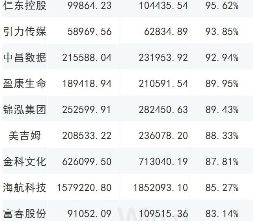 截至2019年三季報(bào)商譽(yù)占凈資產(chǎn)比重大于70%的公司,共有46家;12家的比值超過了百分百,以下列舉部分超過80%的公司;謹(jǐn)慎年終商譽(yù)減值風(fēng)險(xiǎn)爆發(fā);