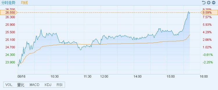 中國恒大(03333)今日股價低開高走,尾盤拉升。截至15時41分,漲8.59%,報價26.55港元,成交額11.82億。