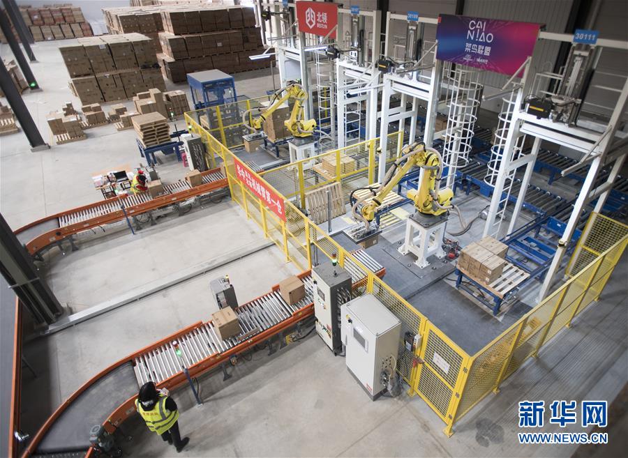 ??? 近日,在菜鳥網(wǎng)絡(luò)武漢黃陂物流倉內(nèi),一組機(jī)械臂在進(jìn)行搬運(yùn)作業(yè)。近日,菜鳥網(wǎng)絡(luò)在湖北武漢黃陂物流倉庫啟用智能機(jī)械臂來搬運(yùn)商品。據(jù)介紹,每組機(jī)械臂一個小時能搬運(yùn)1000件商品,可以24小時不間斷作業(yè)。這些機(jī)械臂的投入,有助于緩解高峰期貨物處理壓力,提高發(fā)貨速度,被工程師親切地稱為“麒麟臂”。新華社記者肖藝九攝