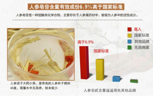 宋總告訴記者,“紫鑫”人參全身是寶。參頭,祛熱解毒;參身,用于養(yǎng)生食用,可一季度食用3-4次,1人食用每次5g人參量(大約相當(dāng)于半支‘紫鑫’人參);根部,功效與人參非常相似,但更溫和,適合癥狀較輕的人群食用。而且“紫鑫”人參種植時間至少5年,皂苷高達(dá)52種,有效成份含量6.9%,活性成分更高,功效更強(qiáng)。