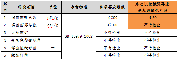 如果衛(wèi)生巾中的微生物指標存在問題,會增加女性月經期婦科炎癥的風險,危害人體健康,我國《一次性使用衛(wèi)生用品衛(wèi)生標準》(GB15979-2002)中對致病微生物有嚴格要求。本次比較試驗參照《綠色產品評價 紙和紙制品》(GB/T35613-2017)中微生物限值最嚴格的消毒級要求(見下表)考核樣品,結果顯示,35款樣品均可以達到消毒等級的要求。