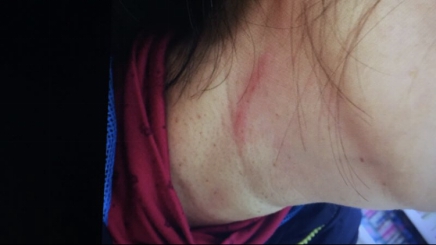 事后,羅小姐的母親張女士很快打電話報(bào)了警。張女士今年52歲,女兒提到母親的傷勢(shì)非常心疼,“我母親頭部腫起,脖子上有三處抓痕(有出血),手指也被抓傷,之后幾天右側(cè)腰部和右膝都感覺(jué)疼痛?!?/p>