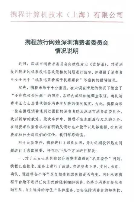 第一,?攜程公司從起初否認存在相關(guān)問題,到今天的公開道歉并提出實質(zhì)性整改措施,從推責諉過到直面解決,深圳消委會對攜程公司前后態(tài)度和做法的轉(zhuǎn)變給予肯定。