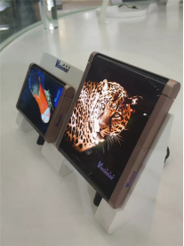 本次展會,維信諾全新發(fā)布并展示了“全球首款7.2英寸卷屏概念機”和“3.35英寸柔性顯示智能可穿戴手機”。前者可量產的7.2英寸屏幕卷曲半徑達到6mm,可實現(xiàn)平板電腦與手機之間的無縫鏈接;而后者則集合了手機與手表功能于一身,屏幕及配套設備均可柔軟環(huán)繞于手腕,彎曲弧度符合人體工學設計,同時這也是目前應用了最大且可量產柔性AMOLED顯示屏幕的智能可穿戴手機。兩款產品的發(fā)布將給未來智能終端和可穿戴產業(yè)帶來創(chuàng)新性變革,引領“未來市場”的應用和走向。