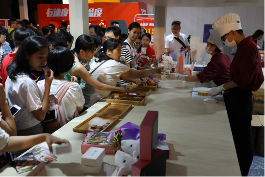 記者在快閃店的手工烘焙區(qū)看到了一塊塊手工鳳梨酥精心制作的全過程。隨著它的“出爐”,濃郁香味吸引來了不少市民圍觀。在試吃區(qū)里,市民品嘗后都紛紛贊不絕口,“好吃,真的好吃,餡料也很足!”除此之外,店內(nèi)還設置了愛的溫度、娃娃機、顏值打折AI人臉識別游戲等互動活動,也吸引了眾多市民的熱情參與和圍觀。