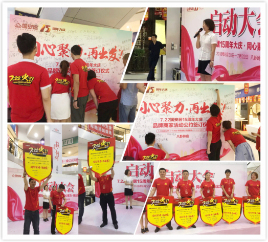 7月3日下午,紅色的T恤覆蓋了國(guó)安居各店商場(chǎng),“7.22國(guó)安居15周年大慶”啟動(dòng)大會(huì)在國(guó)安居各店正式落下帷幕。為確保全員工作執(zhí)行到位,運(yùn)行流暢,國(guó)安居各店店總及各店策劃負(fù)責(zé)人,先后做了本次大慶企劃活動(dòng)及推廣執(zhí)行方案的細(xì)致說(shuō)明,各店參會(huì)的商戶老板、銷(xiāo)售精英及國(guó)安居員工對(duì)此次活動(dòng)的推廣形式與方向感到更加明確了,對(duì)于此次大慶活動(dòng)的開(kāi)展更是充滿了期待與信心。