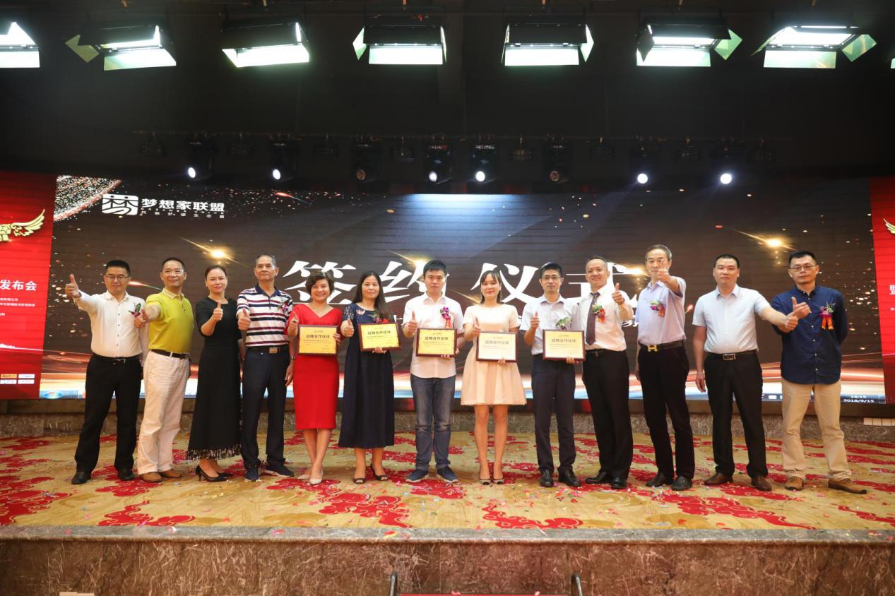 在接下來的授牌儀式中,夢(mèng)想家聯(lián)盟分別同深圳市沃爾核材股份有限公司、匯天控股智匯牛科技有限公司、深圳云智方科技、佳得寶家居、善之泉環(huán)??萍己炗喠藨?zhàn)略合作協(xié)議并授牌。