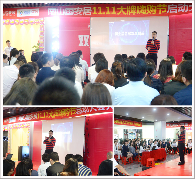 深圳新聞網(wǎng)訊 10月22日下午,“國(guó)安居南山店&騰訊優(yōu)居雙11大牌嗨購(gòu)節(jié)”活動(dòng)啟動(dòng)大會(huì)在國(guó)安居南山店四樓隆重舉行。國(guó)安居南山店各品牌商家老板及銷售精英匯聚于此,正式擂響“雙11大促”的出征鼓!