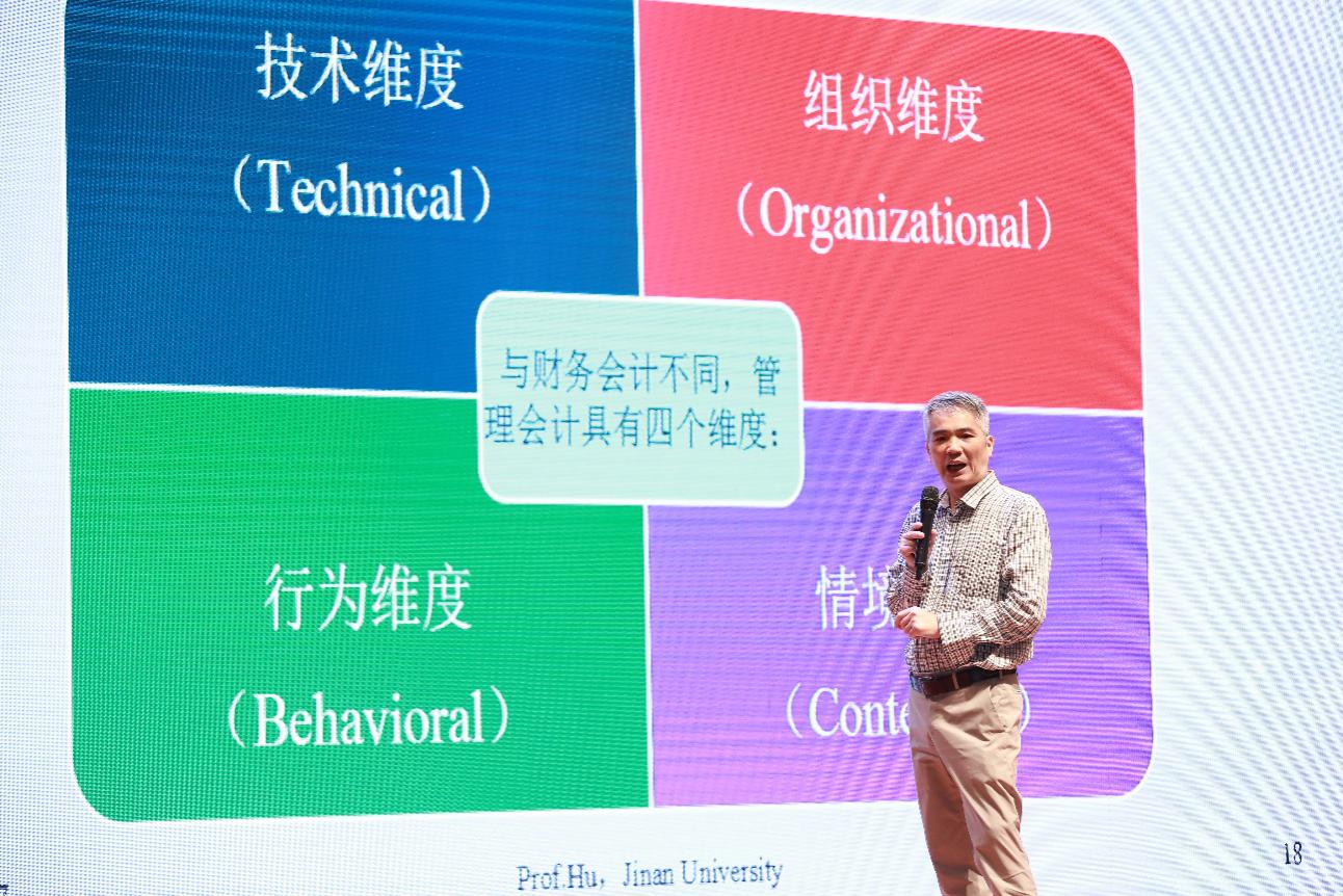 下午,暨南大學(xué)會計(jì)系教授胡玉明以“管理會計(jì)如何‘由技入道’”為題,首先分析了管理會計(jì)與財(cái)務(wù)會計(jì)有何不同,并深入淺出的剖析了大智移云背景下,管理會計(jì)的提升關(guān)鍵在于分析對數(shù)字背后意義。他強(qiáng)調(diào),會計(jì)人員對大數(shù)據(jù)等新科技挑戰(zhàn)不應(yīng)當(dāng)恐慌,反而應(yīng)當(dāng)成機(jī)遇,提升數(shù)據(jù)分析能力。