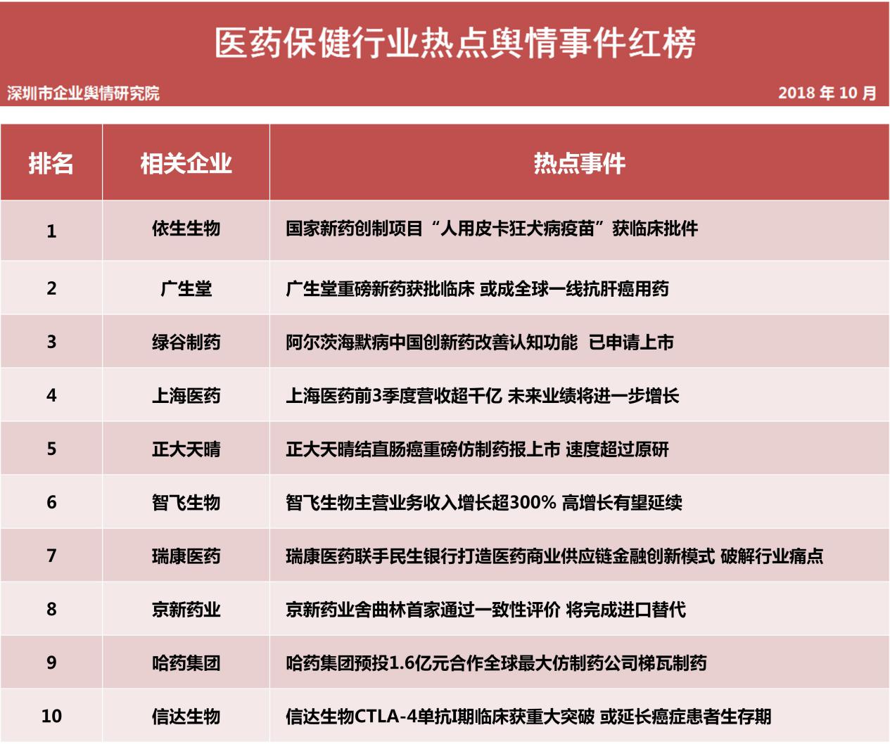 醫(yī)藥保健品行業(yè)熱點事件排行榜榜單說明: