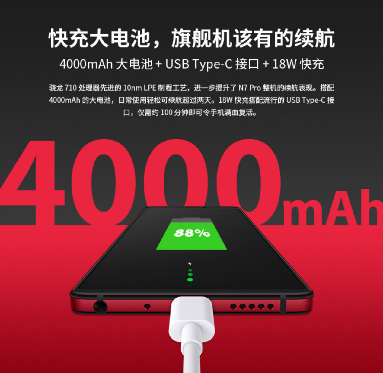 360手機N7 Pro采用了雙面玻璃機身設(shè)計,無劉海5.99英寸全面屏,分辨率2160×1080像素,有珊瑚紅和瑪瑙黑兩色可選。作為2018年度的旗艦機型,配置上,N7 Pro搭載當(dāng)前高通家族中最受關(guān)注的驍龍710處理器,4000mAh大容量電池,支持18W快充,官方宣稱20分鐘可充電30%,100分鐘可充滿。此外在拍照方面,360手機N7 Pro采用了堪稱耀眼的四攝設(shè)計。