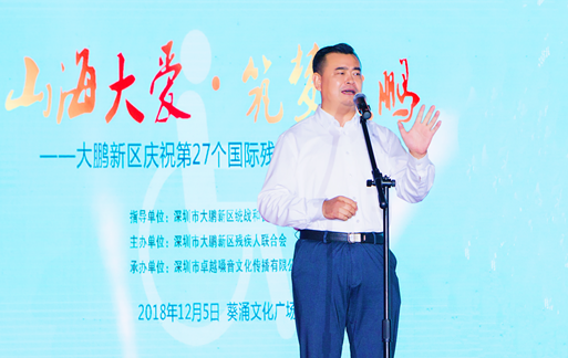 活動的總策劃、著名詩人、深圳市大鵬新區(qū)統(tǒng)戰(zhàn)和社會建設(shè)局常務(wù)副局長、大鵬殘聯(lián)理事長白凌先生說:山海般的大愛來自美麗的深圳大鵬,身殘志堅的人士在此筑夢、追夢直到實現(xiàn)夢想!這是2018年大鵬新區(qū)紀念“國際殘疾人日”大型活動的目的所在。