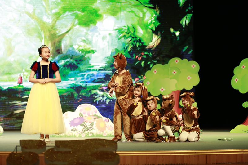 現(xiàn)場表演精彩紛呈,內(nèi)容積極向上,形式豐富多彩,表演生動(dòng)逼真,充分展示出選手們奮發(fā)向上的精神風(fēng)貌,同時(shí)也展現(xiàn)了選手們的外語實(shí)際運(yùn)用能力和自主創(chuàng)新精神?!度虬坠蔷?、《睡美人》、《冰河世紀(jì)》、《獅子王》、《皇帝的新裝》、《白雪公主和七個(gè)小矮人》、《小紅帽》、《馬良的神筆》……一個(gè)個(gè)經(jīng)典的童話故事,惟妙惟肖的表演,生動(dòng)的詮釋著故事里的每一個(gè)角色,把觀眾帶入一個(gè)個(gè)美麗的童話世界。