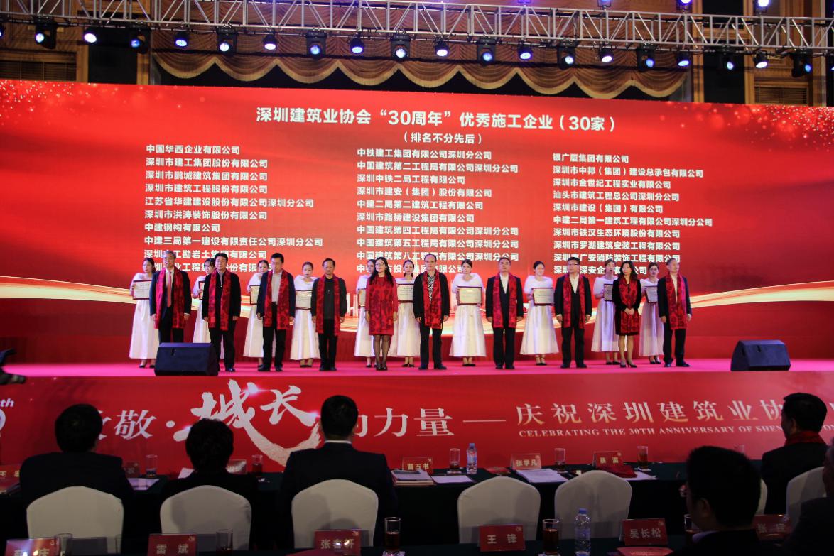 本次慶典上,深圳建筑業(yè)協(xié)會表彰了一批在促進(jìn)、推動深圳建筑行業(yè)發(fā)展中作出重大貢獻(xiàn)的優(yōu)秀企業(yè)和個人,鼓勵他們不斷探索創(chuàng)新,共同創(chuàng)造深圳建筑業(yè)的輝煌。深圳市建被授予“30周年優(yōu)秀施工企業(yè)”;翠林投資集團(tuán)董事長王忠明榮獲深圳建筑業(yè)協(xié)會“30周年優(yōu)秀企業(yè)家”稱號;深圳市建員工盧燦光、郝崇民榮獲“30周年優(yōu)秀項目經(jīng)理”稱號;深圳市建老員工李炳坤榮膺“30周年優(yōu)秀工匠”稱號。