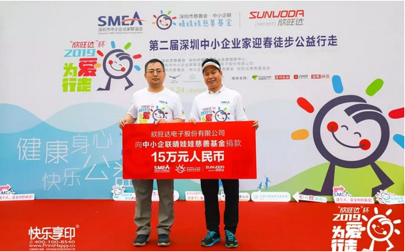 值得一提的是,本屆“為愛行走”活動的愛心冠名企業(yè)——中小企聯(lián)常務(wù)副會長、欣旺達電子股份有限公司董事長王威現(xiàn)場向中小企聯(lián)晴娃娃慈善基金捐款15萬元人民幣,并對本次活動提供了的全程贊助支持。