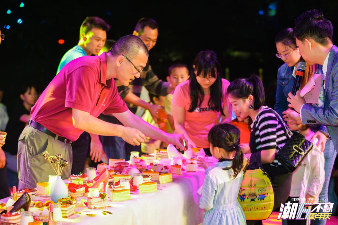 生日慶典現(xiàn)場(chǎng),一首首耳熟能詳?shù)母枨g快的鼓舞、精彩的魔術(shù)等表演為市民們帶來了一場(chǎng)完美的視聽盛宴,抽獎(jiǎng)環(huán)節(jié)更是將現(xiàn)場(chǎng)氣氛推向高潮。在“寶能·allcity6歲了,生日快樂”的祝福聲中,寶能控股高級(jí)副總裁張保文攜寶能商業(yè)副總經(jīng)理朱君及龍崗寶能·all city總經(jīng)理?xiàng)罹阮I(lǐng)導(dǎo)共同登臺(tái)切生日蛋糕,一同分享寶能·allcity生日的喜悅。