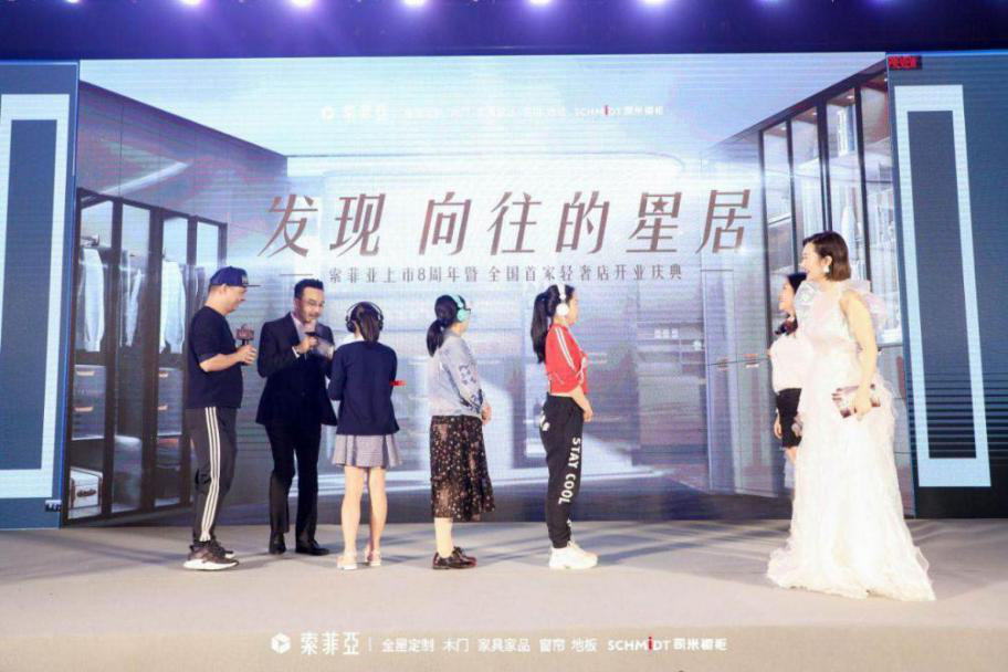 汪涵與索菲亞公司領(lǐng)導(dǎo)同臺慶祝索菲亞上市8周年及全國首家輕奢店開業(yè)儀式,將現(xiàn)場氣氛再次推向高潮。