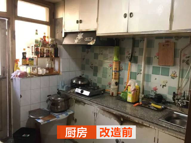 廚房完全可以用不忍直視來形容,油煙已經(jīng)把櫥柜浸黑。操作臺不僅使用起來不方便,而且與整體搭配格格不入。