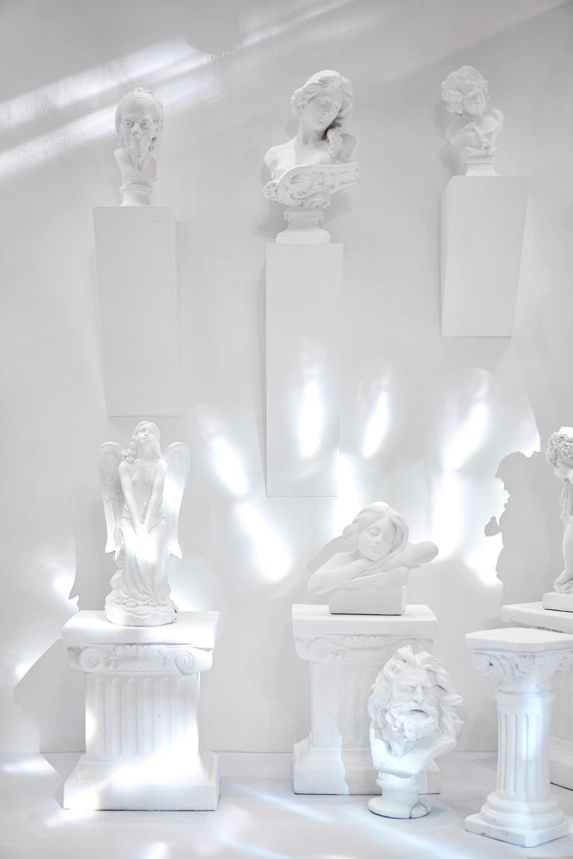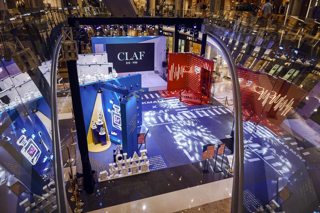愛(ài)之全體驗(yàn)靜態(tài)藝術(shù)展分為四個(gè)區(qū)域,分別對(duì)應(yīng) C-L-A-F(克拉時(shí)刻的英文),C對(duì)應(yīng)白色區(qū)域,代表 C lassic(經(jīng)典 ),在“C lassic”的區(qū)域中,洛杉磯郡藝術(shù)博物館標(biāo)志地標(biāo)-燈柱( Urban Light)與文藝復(fù)興的石膏像相結(jié)合,打造一片純凈又不失時(shí)尚的打卡區(qū)域。L對(duì)應(yīng)紅色區(qū)域,代表Love(愛(ài)),設(shè)計(jì)了以“心電感應(yīng)”的一堵墻面,描繪遇到“愛(ài)情”的場(chǎng)景,從“正?!钡男碾妶D到遇見(jiàn)“愛(ài)”的怦怦心跳,純紅色的背景是打卡拍照的最佳地點(diǎn)。 A對(duì)應(yīng)藍(lán)色區(qū)域,代表Aftertaste(回味),整體背景運(yùn)用國(guó)際克萊因藍(lán),形成撞色的沖擊感。利用香水瓶,打造了一個(gè)藍(lán)色的“氣味收藏室”。F對(duì)應(yīng)黑色區(qū)域,代表Forever(永恒),運(yùn)用霓虹燈管打造神秘時(shí)尚的氛圍,就像鉆石一樣在黑暗中閃爍,黑色背景成為許多人打卡點(diǎn),仿佛電影橋段般的文字設(shè)計(jì),非常適合還原電影場(chǎng)景。