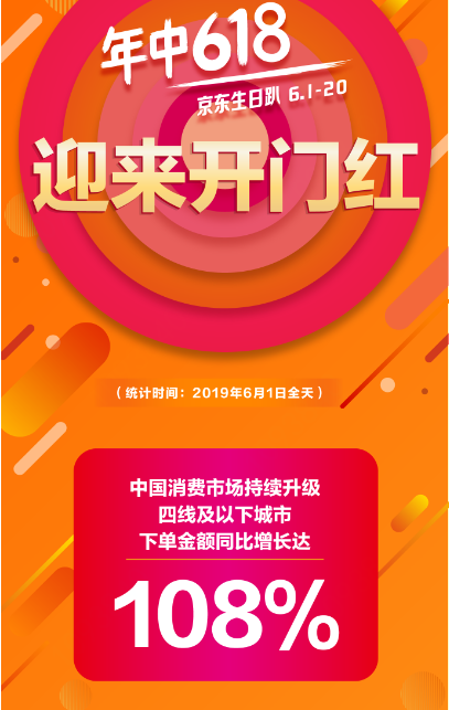 深圳新聞網(wǎng)2019年6月3日訊 6月1日零時(shí)剛過(guò),京東后臺(tái)銷售數(shù)據(jù)顯示訂單量就呈現(xiàn)出井噴狀態(tài),一年一度的京東618全球年中購(gòu)物節(jié)正式開啟。京東大數(shù)據(jù)顯示,6月1日全天四線及以下城市下單金額同比增長(zhǎng)達(dá)108 %。