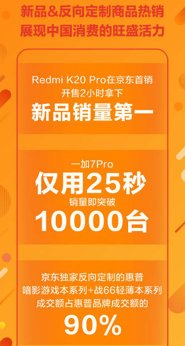 Redmi K20 Pro特地選擇在京東618期間首銷,其中還針對(duì)京東的用戶推出了京東獨(dú)家版本,而Redmi K20 Pro的整體銷售成績(jī)也表現(xiàn)不俗,在開售2小時(shí)就拿下新品銷量第一;而在京東618期間推出的一加7Pro,僅用了25秒就銷售上萬(wàn)部。