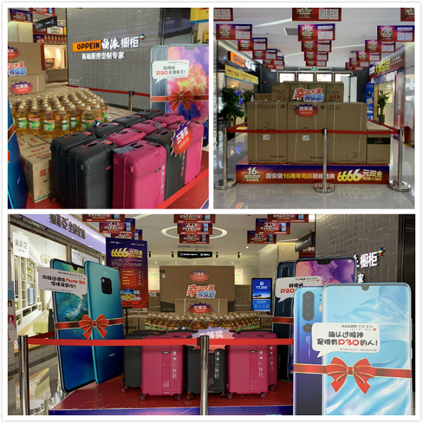 據(jù)了解,這場從6月14日持續(xù)至30日的司慶活動,國安居為業(yè)主朋友們準(zhǔn)備了六大鉅惠:1、司慶重磅獻(xiàn)豪禮,七店就送200臺華為手機!6.30當(dāng)天累計訂單(可多個品牌下定)實付滿15000元送遠(yuǎn)東旅行箱一個,實付滿80000元送華為P20一臺,實付滿150000元送華為mate20一臺,實付滿250000元送華為P30手機一臺;2、6月30日前,提前在國安居店面及微信16元搶購《司慶超抵卡》,活動當(dāng)天簽到即可尊享6重超值豪禮;3、6月14日-6月29日活動期間,顧客買單后微信分享活動,即可領(lǐng)取16-666元隨機金額現(xiàn)金紅包一個,5000個現(xiàn)金紅包等您來瓜分!還有機會贏取終極大獎華為P30哦;4、國安居16周年司慶公益義賣,驚現(xiàn)160元馬桶、160元爐灶、16元花灑、16元鞋柜……買到就是賺到!沒錯,就是這么任性;5、160萬現(xiàn)金聯(lián)單就返,6月30日活動當(dāng)天,在國安居下定3個品牌以上(每個品牌實付滿3000元),即可參與聯(lián)單返現(xiàn)活動,多買多返,上不封頂;6、終極抽6666元現(xiàn)金大獎,6.15-6.30活動期間,購物實付金額滿2000元可領(lǐng)取抽獎券一張,滿4000元領(lǐng)取兩張,以此類推。