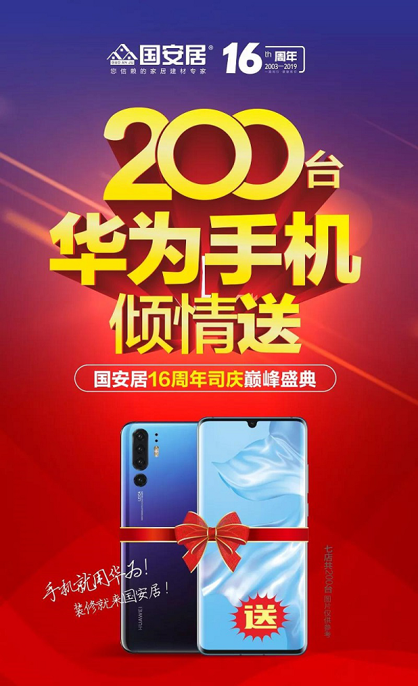 時光有限,堅持無限,國安居16年里始終如一的堅持做著一件事情:顧客至上,服務(wù)第一,誠信為本!為回報廣大家居消費者一直的厚愛,國安居深惠七店在此16周年之際,攜手旗下1000余家一線大牌舉行“16周年司慶巔峰盛惠,200臺華為手機傾情送”大型促銷活動。