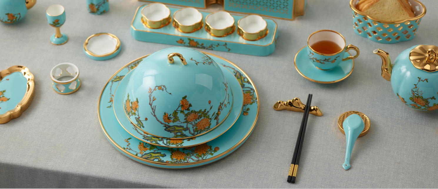 釉中金技術(shù)是通過高溫讓表層釉面變軟,使金面浸入釉中,形成釉中金效果。所形成的金面不但光亮平滑,經(jīng)久耐磨,且更抗腐蝕、抗氧化。釉中金技術(shù),瓷器與人的日常相伴,將歷久彌新。