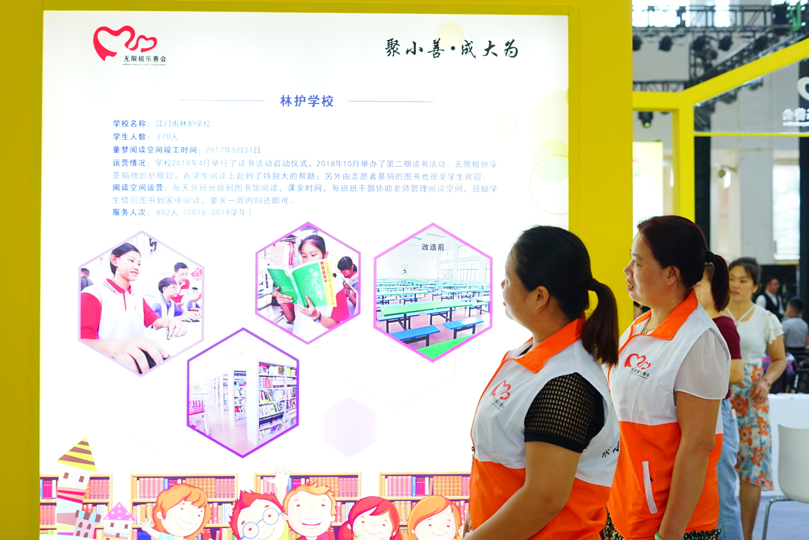 在南國(guó)書香節(jié)江門分會(huì)場(chǎng)的場(chǎng)館中央,“黃色小屋”尤其吸人眼球。在項(xiàng)目展示上,無限極樂善會(huì)多年來一直關(guān)注鄉(xiāng)村兒童的閱讀教育問題,自2015年起,攜手江門市相關(guān)政府部門發(fā)起了童夢(mèng)閱讀空間公益項(xiàng)目,致力于兒童閱讀空間建設(shè)及校內(nèi)閱讀推廣工作。在展區(qū),可以看到五所童夢(mèng)閱讀空間的運(yùn)營(yíng)等基本情況。
