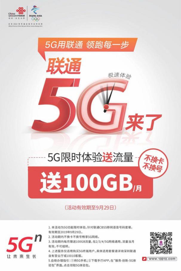 選購5G手機時或許您仍存疑慮,5 G流量資費究竟如何?為配合5G手機發(fā)售,深圳聯(lián)通特別推出“月送100G B流量,5G限時體驗活動”。自8月起,凡通過正規(guī)途徑購買5G商用手機(具有正規(guī)發(fā)票)的用戶,不換卡不換號,即可領(lǐng)取一次聯(lián)通5G流量體驗包,免費體驗5G網(wǎng)絡(luò)。具體操作流程是使用5G手機登陸“中國聯(lián)通手機營業(yè)廳”APP,通過“服務(wù)-創(chuàng)新-5G體驗包"點擊領(lǐng)取。在線下,用戶也可持本人身份證及5G手機,前往聯(lián)通營業(yè)廳現(xiàn)場領(lǐng)取,領(lǐng)取后流量包立即生效,可享受最高1Gbps的5G速率體驗,流量包將在9月底自動失效。
