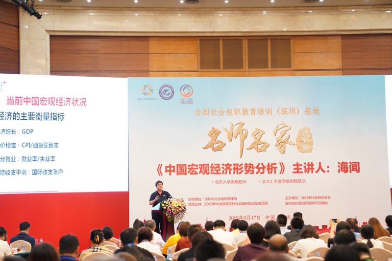 深圳新聞網(wǎng)2019年9月18日訊 9月17日下午,深圳市社會(huì)組織總會(huì)“名師名家講學(xué)堂”在五洲賓館華夏廳再次與大家見(jiàn)面。總會(huì)聯(lián)合黨委書(shū)記陳亞凱與近500名深圳社會(huì)組織、企業(yè)主要負(fù)責(zé)人一起,聆聽(tīng)匯豐商學(xué)院創(chuàng)院院長(zhǎng)海聞教授主講《中國(guó)宏觀經(jīng)濟(jì)形勢(shì)分析》。