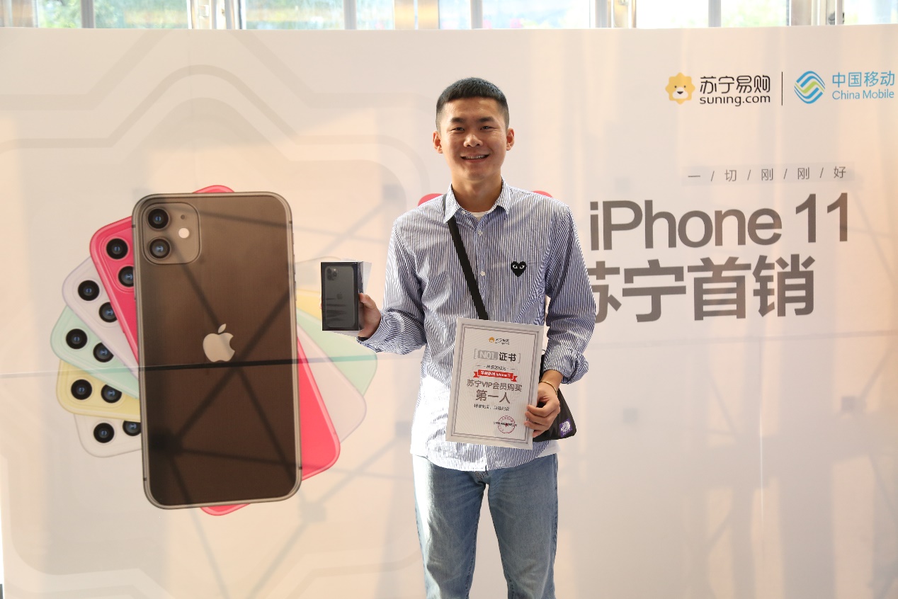 深圳新聞網(wǎng)2019年9月20日訊 9月20日8點(diǎn), iPhone11系列新品在國(guó)內(nèi)線上線下渠道同步開(kāi)售,上午8點(diǎn)剛剛開(kāi)售一分鐘內(nèi),在北京慈云寺蘇寧易購(gòu)門(mén)店,國(guó)內(nèi)第一臺(tái) iPhone11手機(jī)已經(jīng)賣(mài)出,一位在北京剛畢業(yè)的大學(xué)生謝先生作為資深果粉,成為國(guó)內(nèi)入手 iPhone11新機(jī)的第一人。