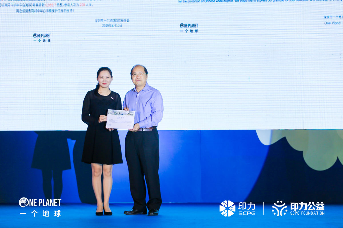 保護(hù)中華白海豚除了政府在領(lǐng)航前行,更有像印力公益基金會(huì)等組織在默默付出、前赴后繼,他們以最實(shí)際的支持,為推動(dòng)人與自然和諧的相處做出貢獻(xiàn),喚醒每個(gè)人內(nèi)心深處的海洋夢(mèng)!在熱烈的掌聲中,迎來(lái)了一個(gè)地球自然基金會(huì)為印力公益基金會(huì)頒發(fā)捐贈(zèng)證書(shū),感謝印力公益基金會(huì)為中華白海豚保護(hù)項(xiàng)目提供了捐贈(zèng),以實(shí)際行動(dòng)推動(dòng)了生物多樣性保護(hù)。